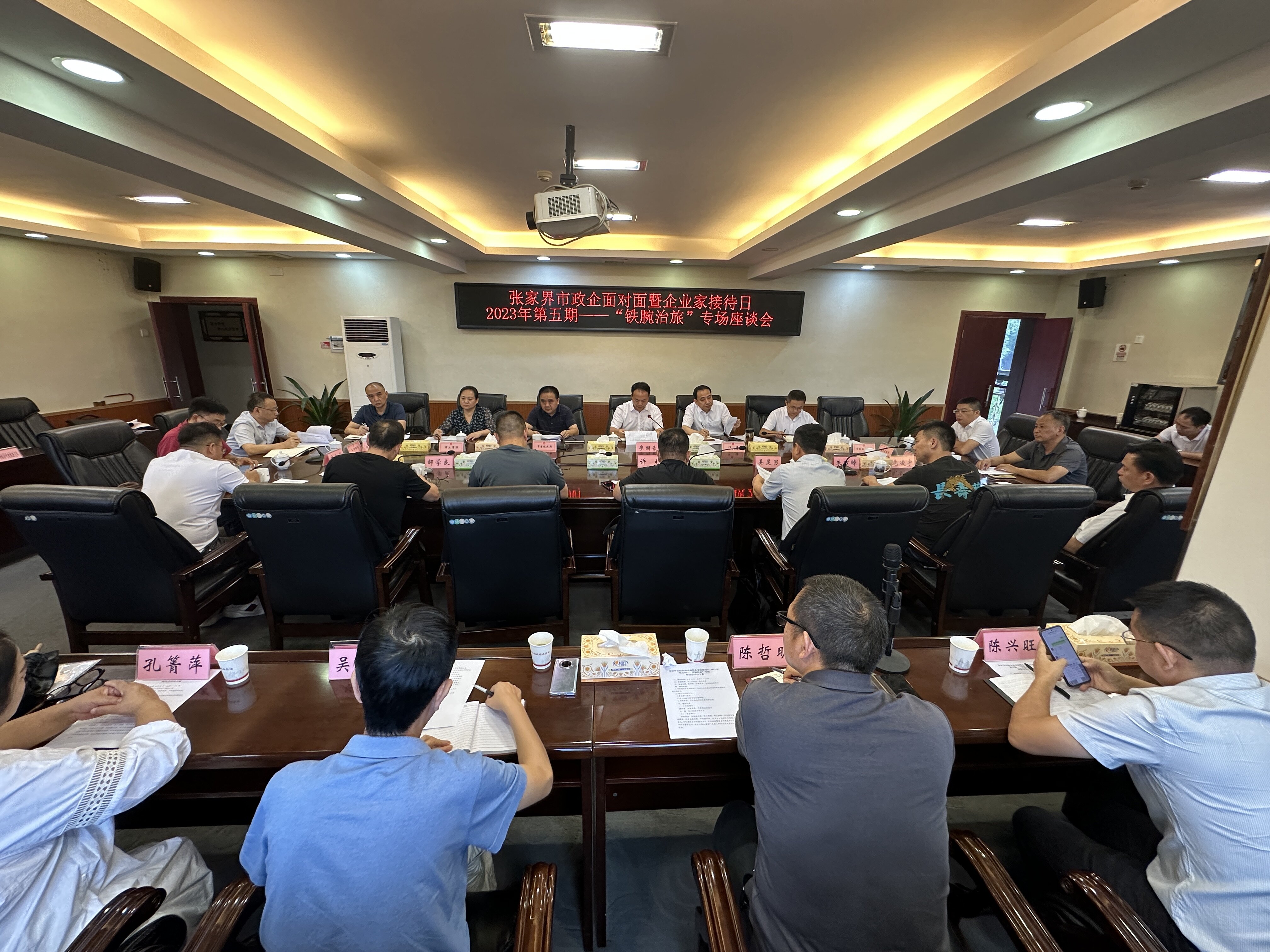 張家界新聞網(wǎng)訊(全媒體記者 宋美慧)8月30日下午,我市召開政企面對(duì)面暨企業(yè)家接待日2023年第五期——“鐵腕治旅”專場(chǎng)座談會(huì),市委常委、市委統(tǒng)戰(zhàn)部部長(zhǎng)廖國(guó)豪主持會(huì)議,副市長(zhǎng)汪濤出席。